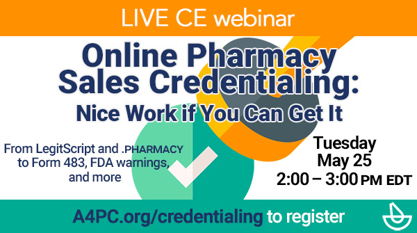 It may not be so simple if you're a compounder. Don't worry, we've got you covered with a one-hour webinar on credentialing: "Nice Work if You Can Get It," on Tuesday, May 25. Hit up A4PC.org/credentialing for info and to register.