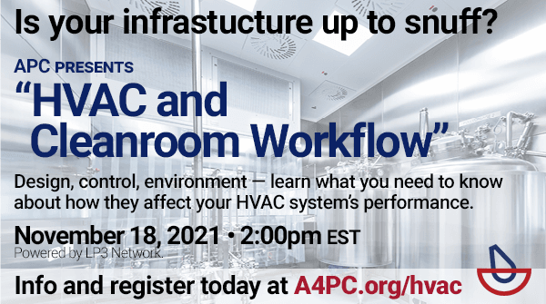Sure, your HVAC system might be out of sight, but it can’t be out of mind. That’s why APC is offering a new CE course: "HVAC and Cleanroom Workflow." It’s next Thursday, November 18, at 2:00pm EST.