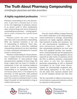 To help you educate prescribers, APC and the Pharmacy Compounding Foundation have developed two member-only briefing documents you can share with physicians and other prescribers. One is “The Truth About Pharmacy Compounding.” It explains the regulatory framework in which compounders operate and provides an overview of what can and cannot be compounded under federal law. The other is “Compounding Peptides: It’s Complicated.” It explains restrictions on peptide compounding as well as uncertainty surrounding the list of semaglutide on FDA’s Drug Shortage List.