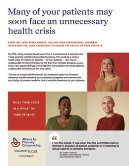 Download and ask your sales reps to share it— either a hard copy or the digital version—with all the prescribers of compounded hormones you work with. What they don’t know about FDA’s implicit threat to restrict cBHT can hurt them and their patients. Help us engage them.